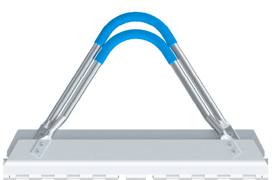 der Traufe oder an einem Wandanschluß mit einem Handgriff.
